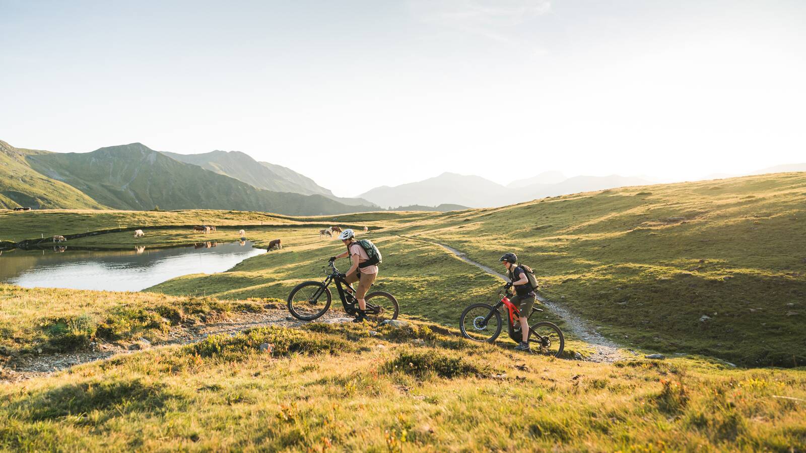 Die interaktive Bike-Karte zeigt Ihnen die schönsten Touren. Den GPS-Track spielen Sie sich von dort direkt aufs Display oder Sie folgen einfach der übersichtlichen Ausschilderung. Mühelos erklimmen Sie die Pinzgauer Grasberge, genießen das Panorama in die Hohen Tauern, die Kitzbüheler Alpen und die Leoganger Steinberge - schließlich haben Sie dank E-Bike noch ausreichend Kraft, die Umgebung zu genießen. Besonders auf den zahlreichen Höhenwegen der Region wird Sie das E-Bike begeistern.