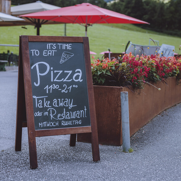 On the menu of Restaurant Wiesenegg in Saalbach only the best of national and international cuisine can be found. The menu includes regional delicacies, fresh dishes with healthy toppings and delicacies from our own and surrounding farms. Gourmets big and small will enjoy pizza, pasta, burgers and tartars. To finish off, choose from the fine dessert menu. In summer, the beautiful sun terrace invites you to a short stop while biking or to cozy evenings.