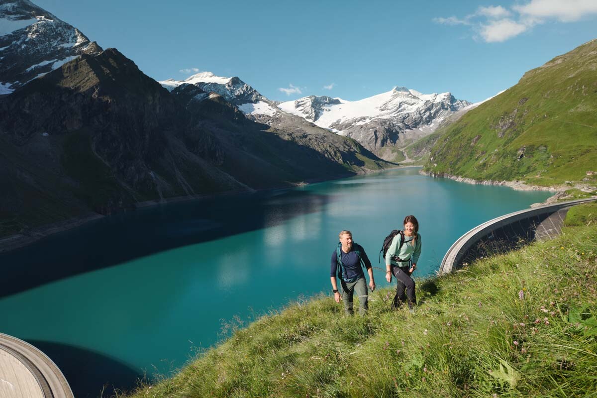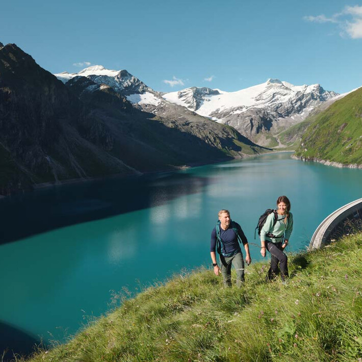 Around the reservoirs there is plenty to discover: Europe’s largest open inclined lift, snow-capped peaks, breathtaking dams, a summer program for the whole family, and the world’s highest via ferrata on a dam wall. Opportunities for a relaxed stop are offered by the Bergrestaurant Mooserboden and the Fürthermoar Alm.