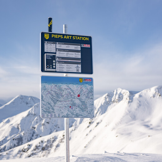 Throughout the skiing area you find avalanche beacon checkpoints at many key mountain stations. By passing the checkpoints every freerider can easily test whether the life-saving device is turned on and sending out signals.