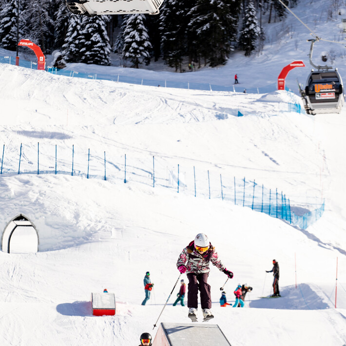 And if you can’t agree whether it’s more fun to jump over kickers or dash through a fun twister, that’s no problem, ‘cause right next to the Family Park you find the Funslope U-Bahn with lots of exciting features that guarantee fun aside of freestyle.